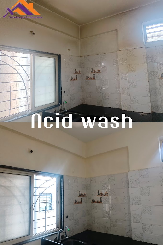 At Gurukrupa Painting Services, we offer professional acid wash and cleaning services to thoroughly clean and rejuvenate surfaces such as tiles, concrete, and stone. Our expert team uses specialized acid solutions to remove tough stains, grime, and mineral deposits, restoring the original shine and cleanliness of your surfaces.